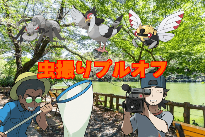 井の頭公園で撮影した野生生物モチーフのポケモンだけで戦う虫撮りプル+カラオケ調整オフ告知。