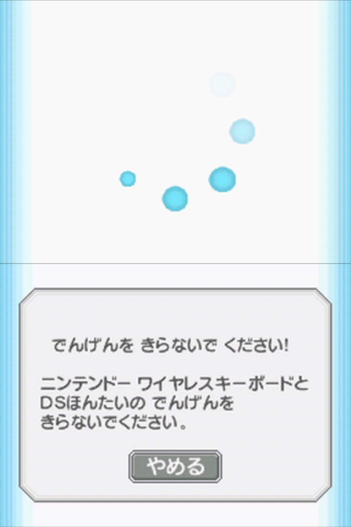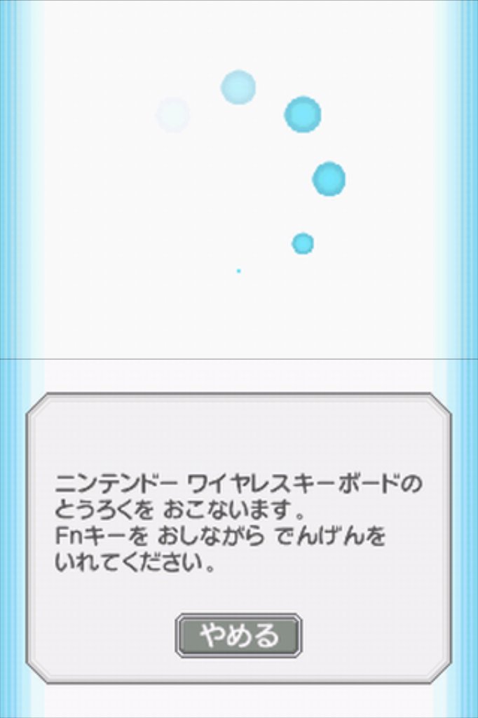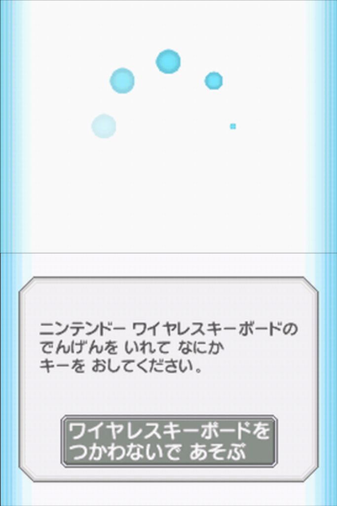 ⑤この画面になったらキーボードの電源を入れ、キーボードのコネクトボタン、もしくはそれに近しい操作を行う(LogicoolのBluetoothUSBが付いてる奴はどうもそれのみと通信ができるタイプっぽくてポケモンタイピングDSのカセットとは通信できないみたいでした《一敗》)
