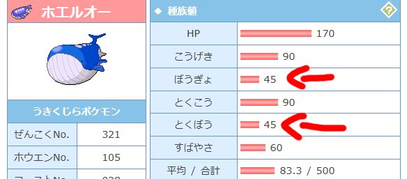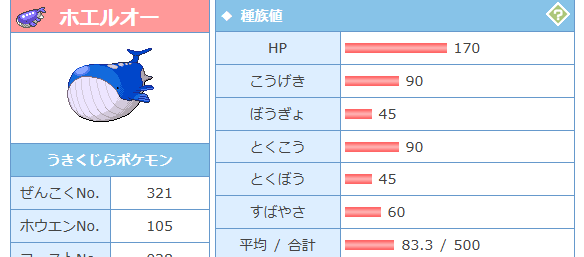 さて、ホエルオーか。とりあえず種族値見るか。