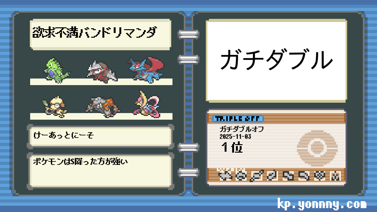 構築"は"優勝してよかったです。普通に優勝してしまうとトリプルオフで優勝したことないのにダブルオフで優勝するお前は本当にダブル勢なのか?と言われてしまいそうで、いい形で成績を出せました。