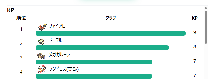 ファイアローの使用率が50%を超えている中、