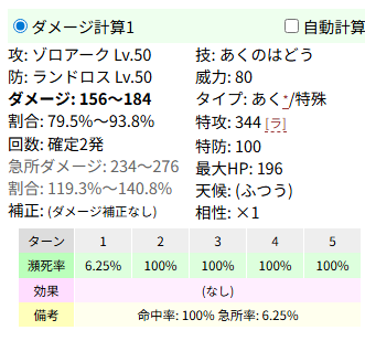 ゾロアークの素早さ種族値は105で、ランドロスを抜いているんですよ。相手がランドを投げてきても1回は行動できる。素晴らしい。